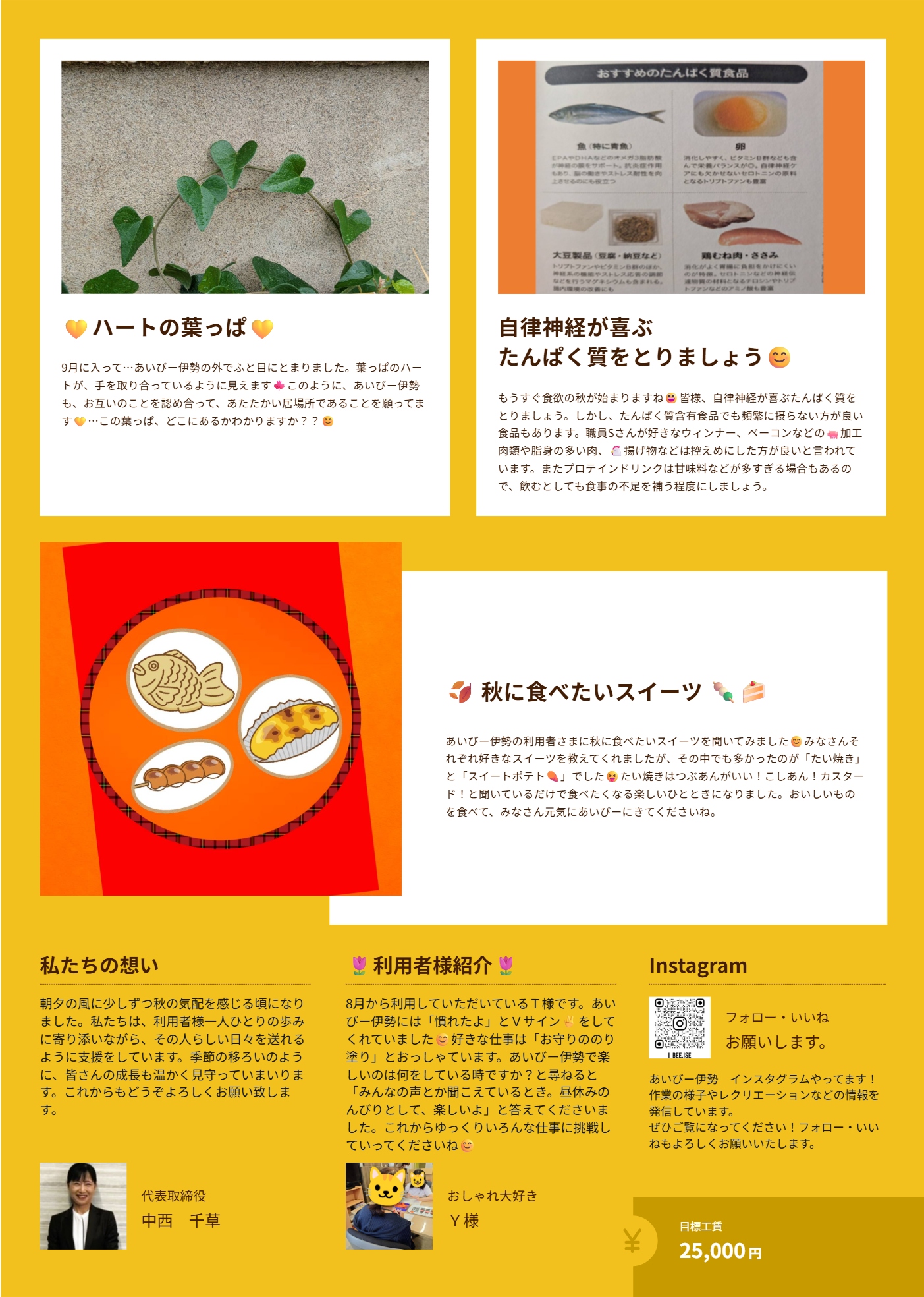 2025年9月伊勢クリックで拡大できますこの会報誌を作成した事業所はこちらあいびー伊勢三重県伊勢市一之木1丁目14-19月曜日〜土曜日 10:00〜15:00あいびー伊勢の前後の会報誌2025年10月2025年8月