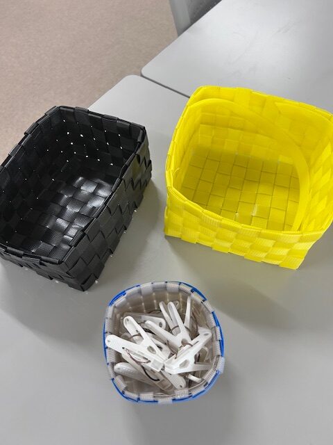 気分転換に分別して捨てるPPバンドで籠を編んでみました。