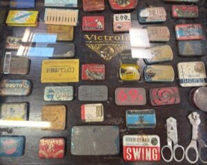 音響に関わるものだけでなく、お菓子の箱などの長期保管を目的としていない消耗品もありました。いわゆるエフェメラと呼ばれるもので、当時の大衆の世相を感じられる味わい深い品々です。