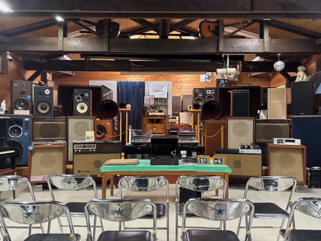 こちらの部屋では、さまざまな年代のスピーカーを聞き比べることもできます。このサイズの物は、一般家屋ではなかなか聞くことのできない迫力を感じられます。