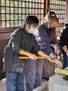 到着後は手水舎で、丁寧に手と口を清めいざ参拝へ…