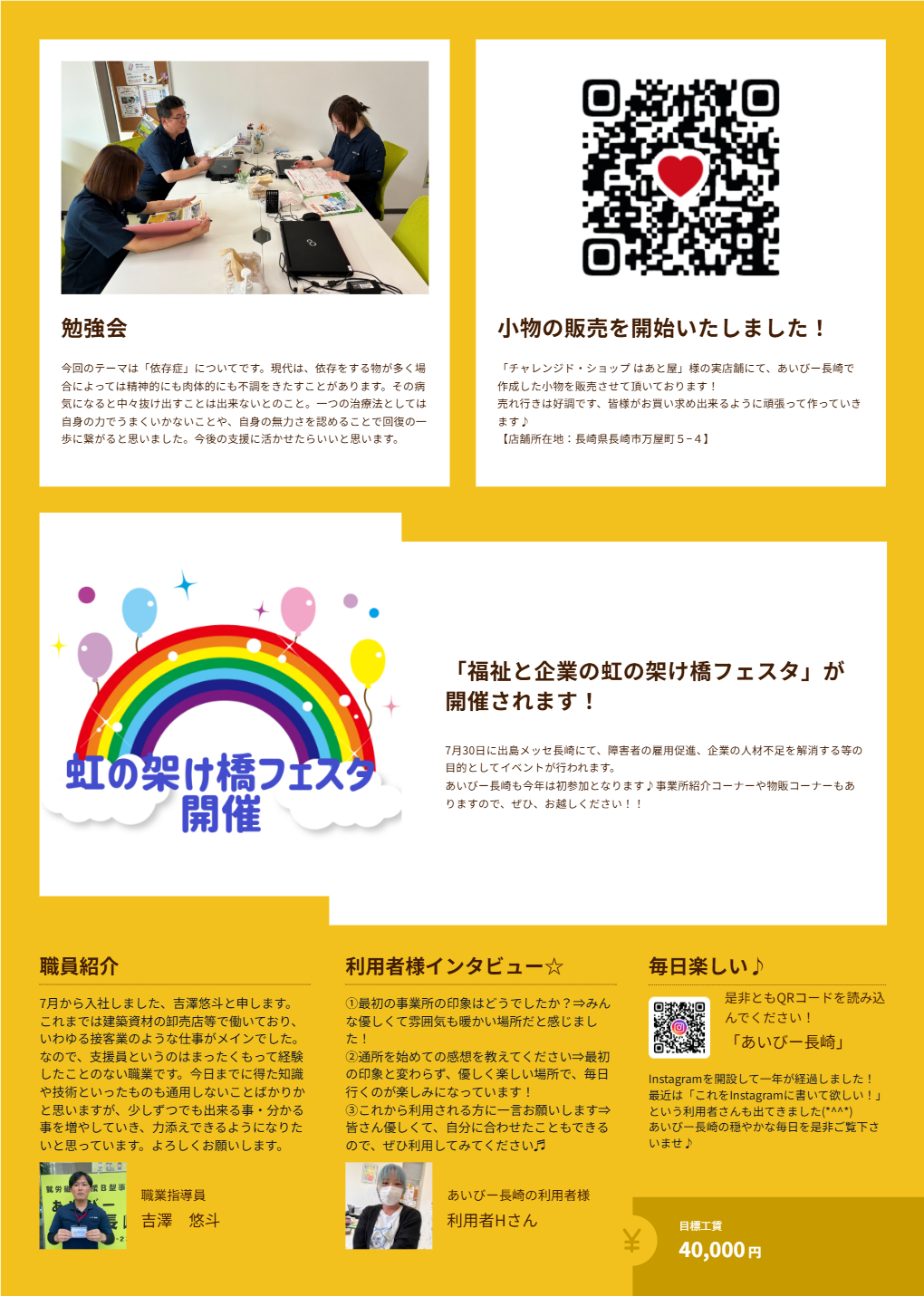 2025年7月長崎クリックで拡大できますこの会報誌を作成した事業所はこちらあいびー長崎長崎県長崎市興善町4-5 カクヨウビル1階月曜日~金曜日 10:00~15:00あいびー長崎の前後の会報誌2025年8月2025年6月