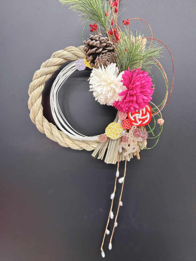 皆さん好きな水引飾りを作り、それぞれの水引を貼り付けしめ縄が完成し、年末の締めくくりにとても良い時間となりました✨